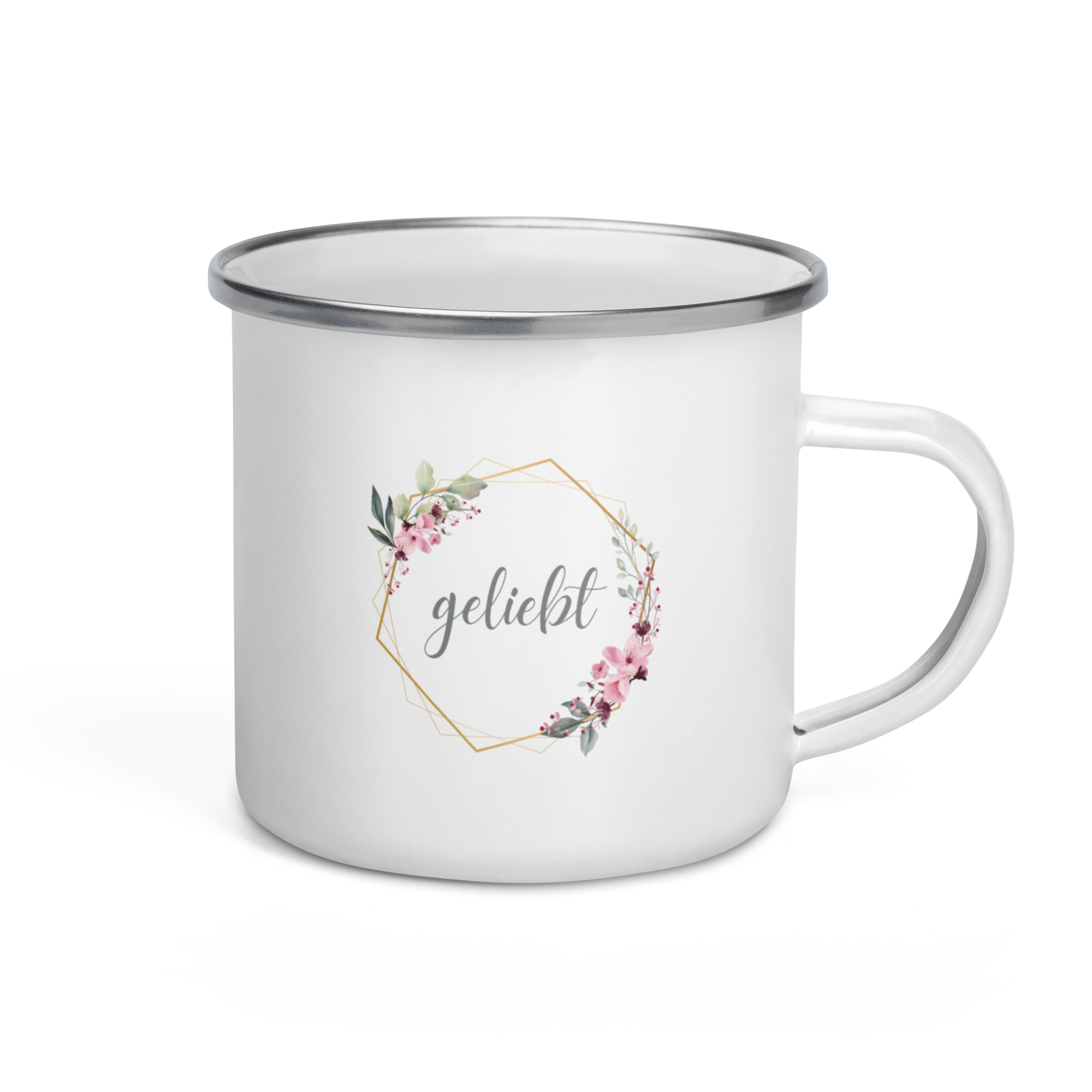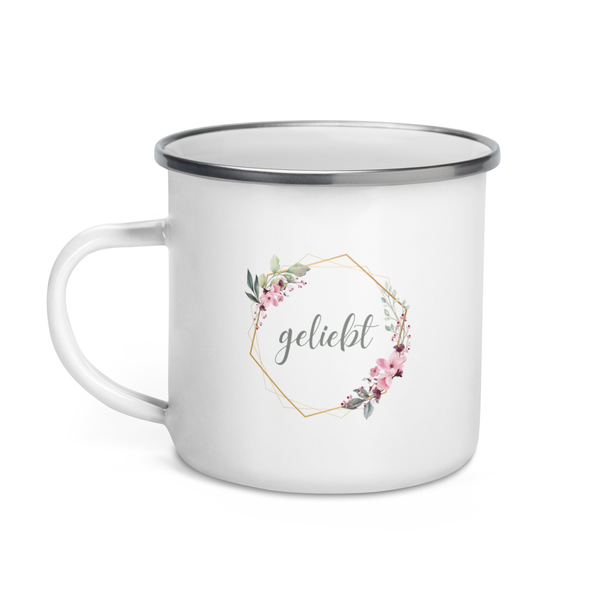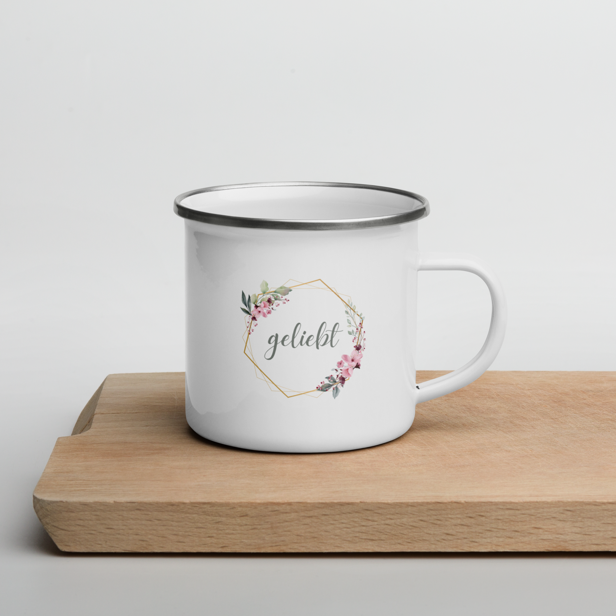 Die Tasse ist mit einem liebevollen floralen Design verziert und verfügt über die inspirierende Aufschrift "geliebt", die als tägliche Erinnerung an Gottes Liebe und Fürsorge dient.