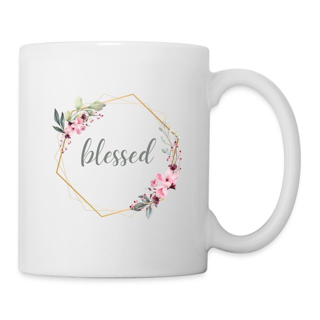 Produktinformationen "Weiße, glänzende Keramiktasse "blessed""